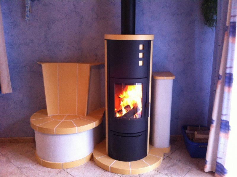 Lieferung eines Kaminofen MEZ Catania und errichtung eines Podestes und einer Sitzbank aus Keramik 9701 Clervaux Deutschland