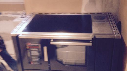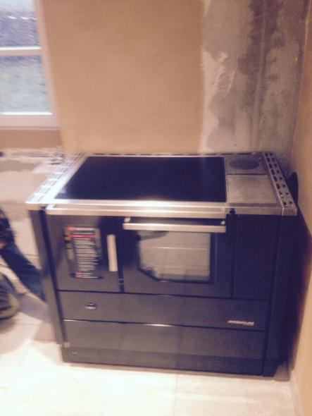 Installation eines Haas und Sohn Küchenherdes. Der Herd ist mit einer Ceran Kochplatte ausgestattet.